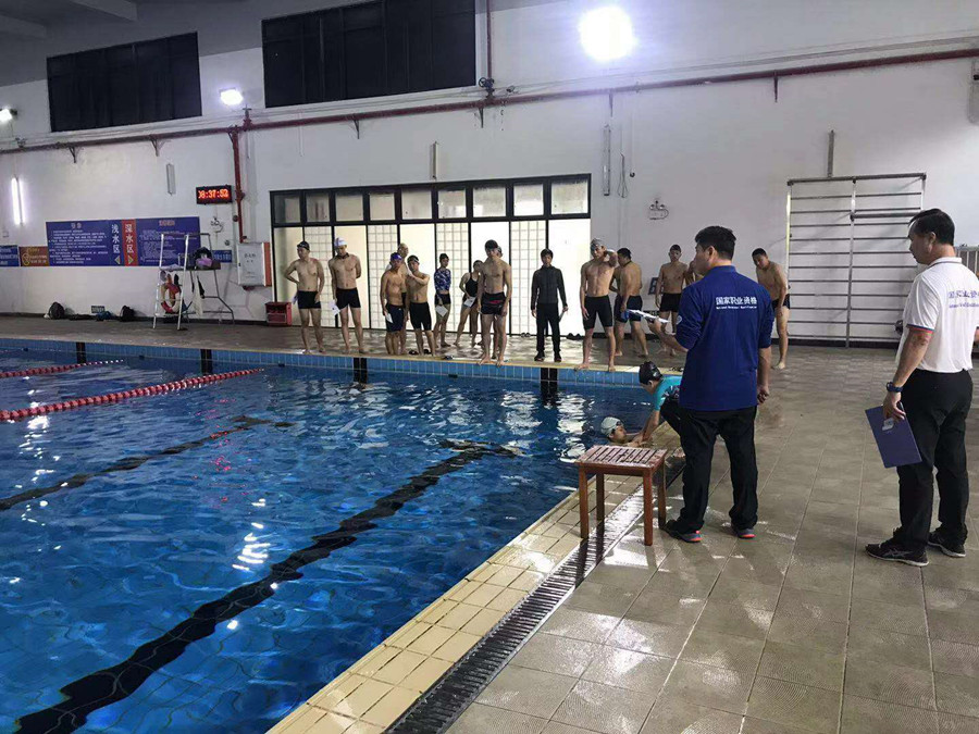 国家体育行业特有工种游泳救生员证是国家一项重要的职业资格证,是加强师生职业技术能力,培养应用型人才的具体表现。公司开展国家体育行业特有工种游泳救生员培训班,一共有23名员工报名,培训班的内容主要有理论学习和实操训练两部分。理论学习内容包括游泳救生员的理论基础,技能理论,注意事项等知识,实操训练内容主要是现场赴救,拖带上岸,岸上解脱,心肺复苏,25米速度游,二十米潜泳等。培训班于11月25日至29日,进行了理论学习和实操技能的训练,11月 30日,由广东省体育行业特有工种游泳救生员考评员对培训成员进行了考核,考核内容为理论和实操,公司23名学员认真完成了相关的考核内容,考核成绩将在国家体育行业特有工种游泳救生员网站公布。