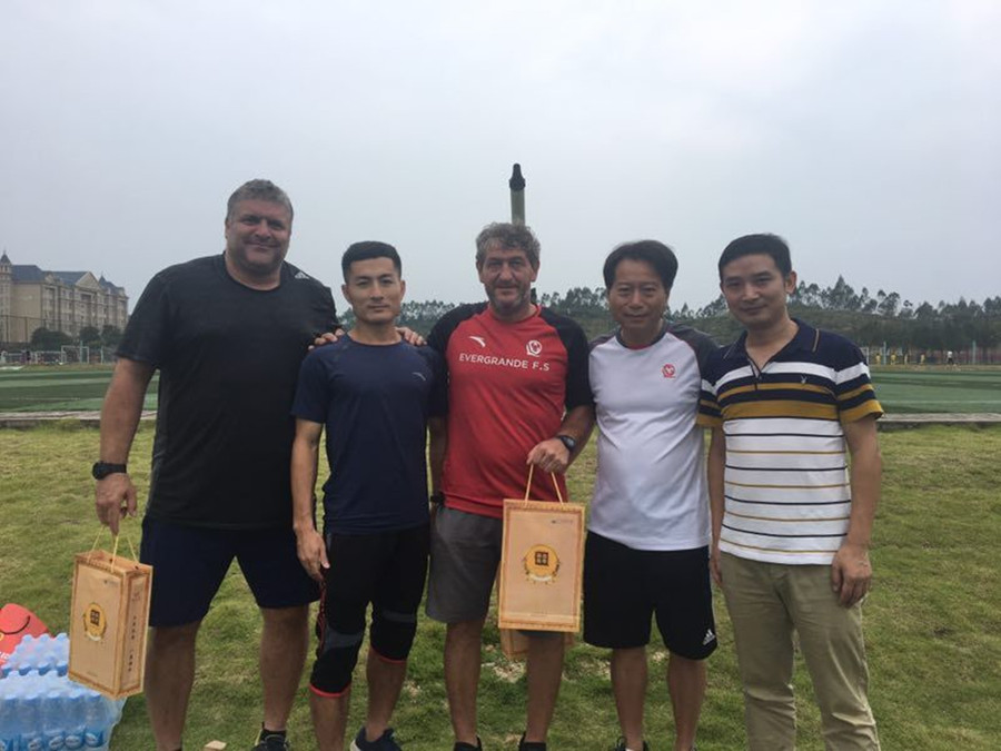 与恒大足球队教练、领队合影