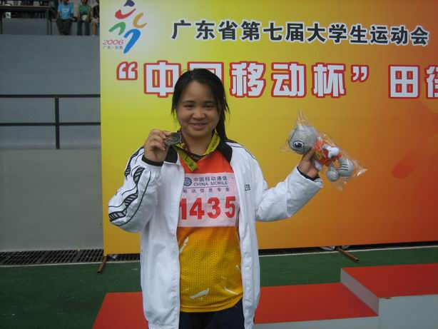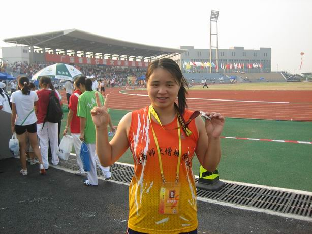 周春秀同学获得女子铅球银牌、标枪第五名和获得体育道德风尚奖的好成绩