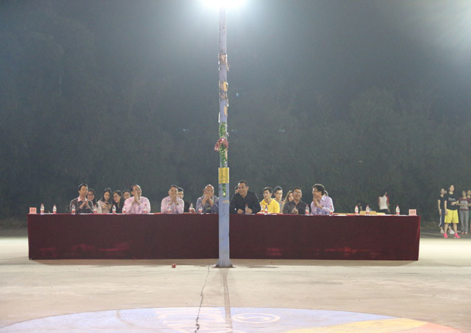 3月31日晚,公司第二届篮球联赛开幕式在一号篮球场举行。公司党委书记谭马利、公共体育部主任雷翔、校团委书记何柏略、外语系党总支书记徐超、旅游管理系党总支书记汪椿东、会计系党总支书记李锦堂以及各院、系团学指导老师、政工老师们和员工代表们等出席了活动。