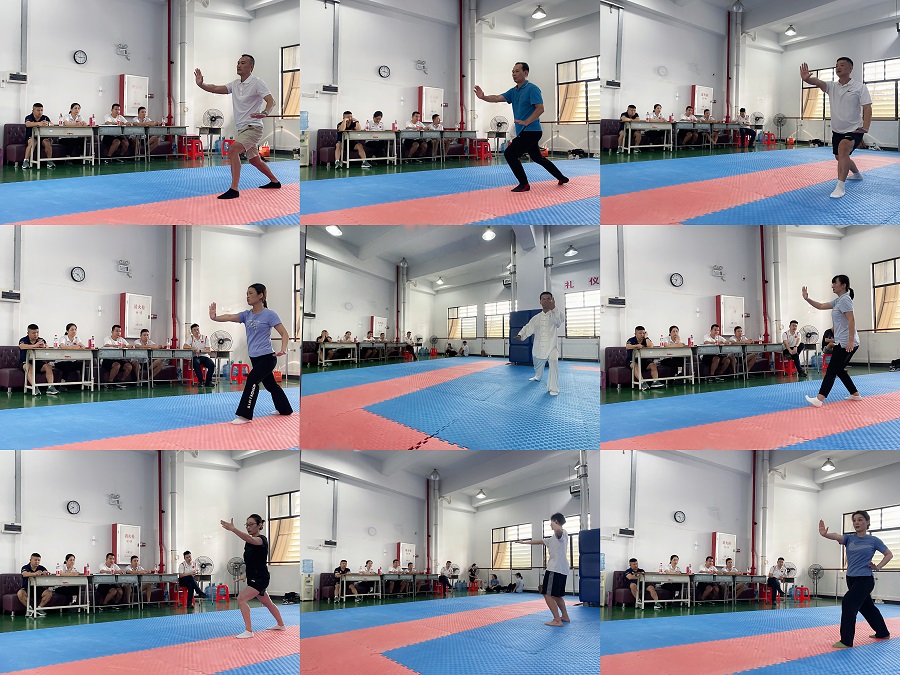 太极拳是对身体有益的一项体育活动,作为体育主管部门,在做好疫情防控的基础上,积极带领师生开展太极拳的普及和教学,这就需要任课老师们有着扎实的基本功。在此次考核前,全体专任教师经过了集中培训教学和分教研室强化练习两个环节,大家基本掌握了“八式太极拳”的每一个动作要领。在阶段考核中,教师们逐一现场进行讲解和演示,语言讲解清晰,动作演示规范,得到了现场评委们的肯定。